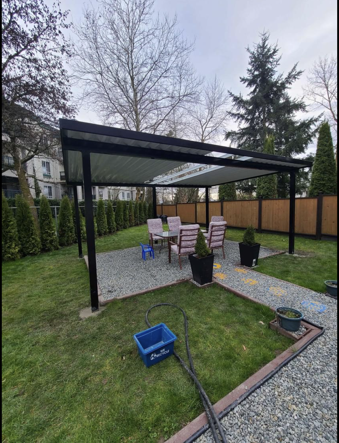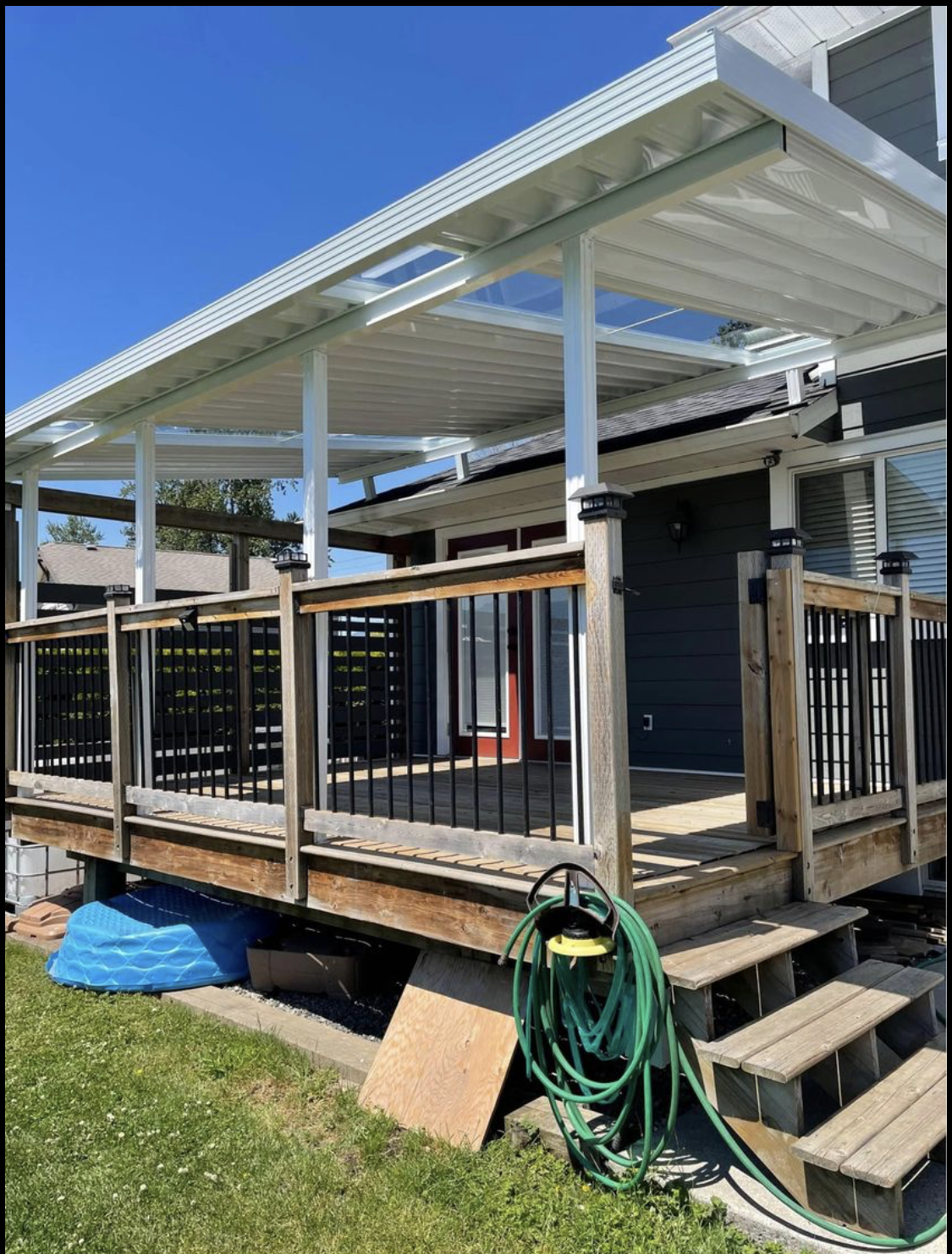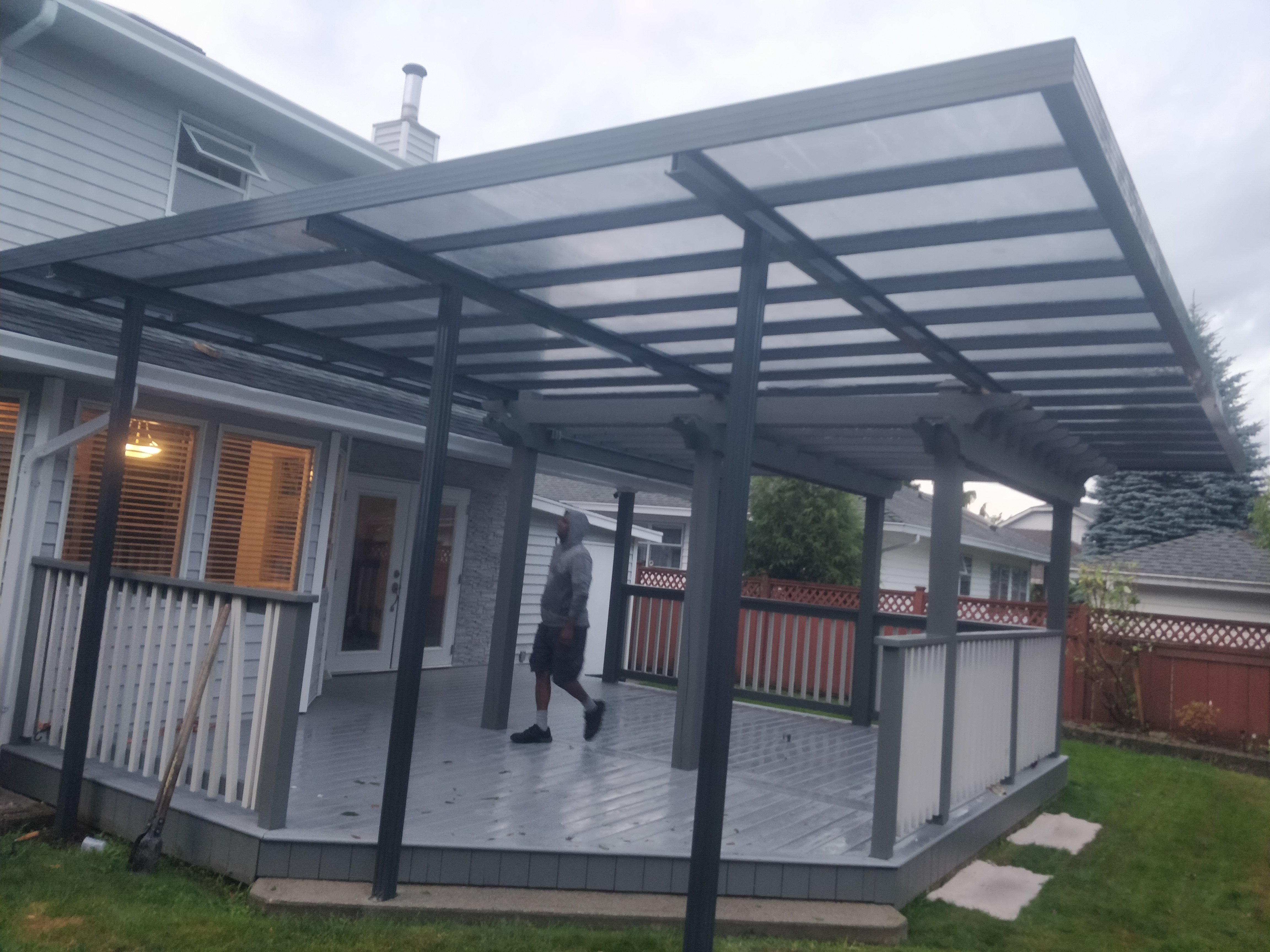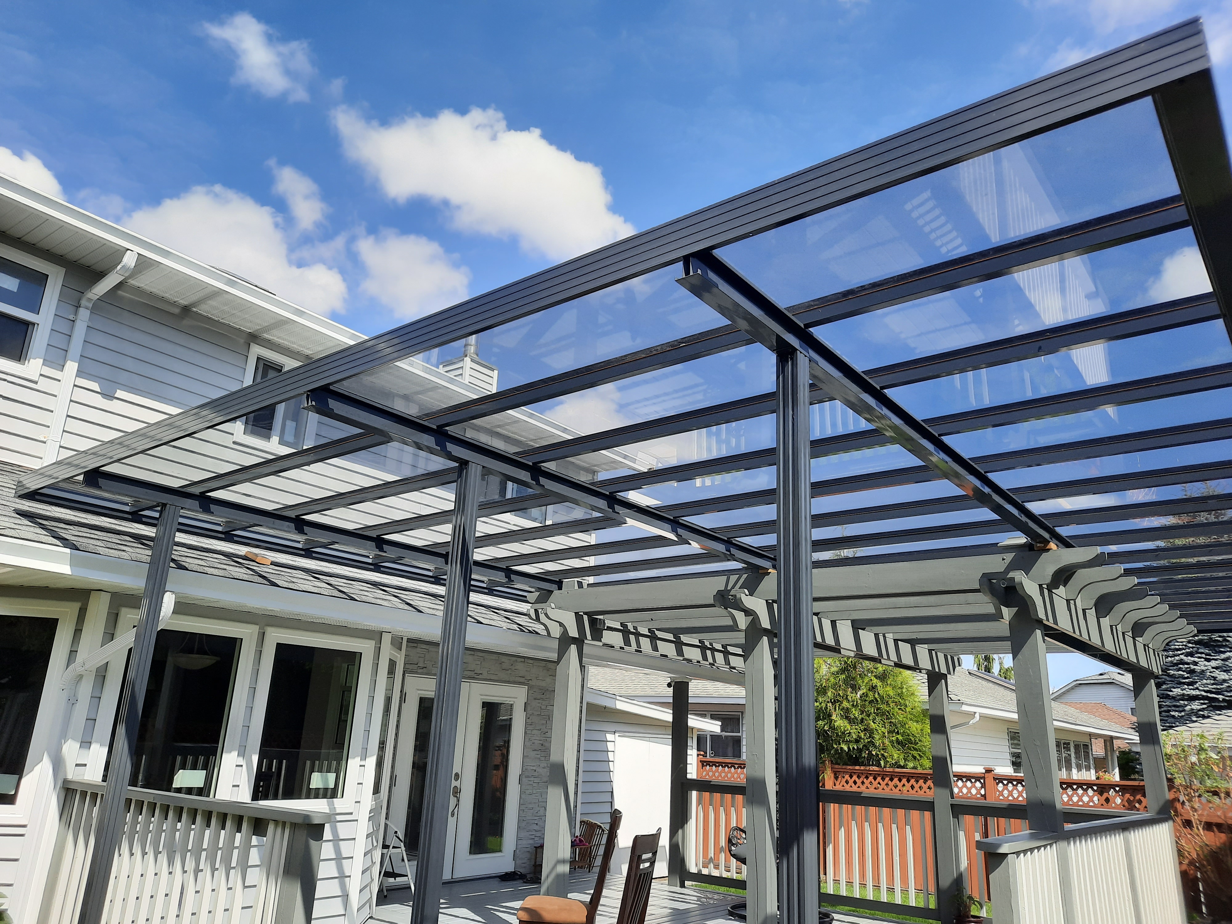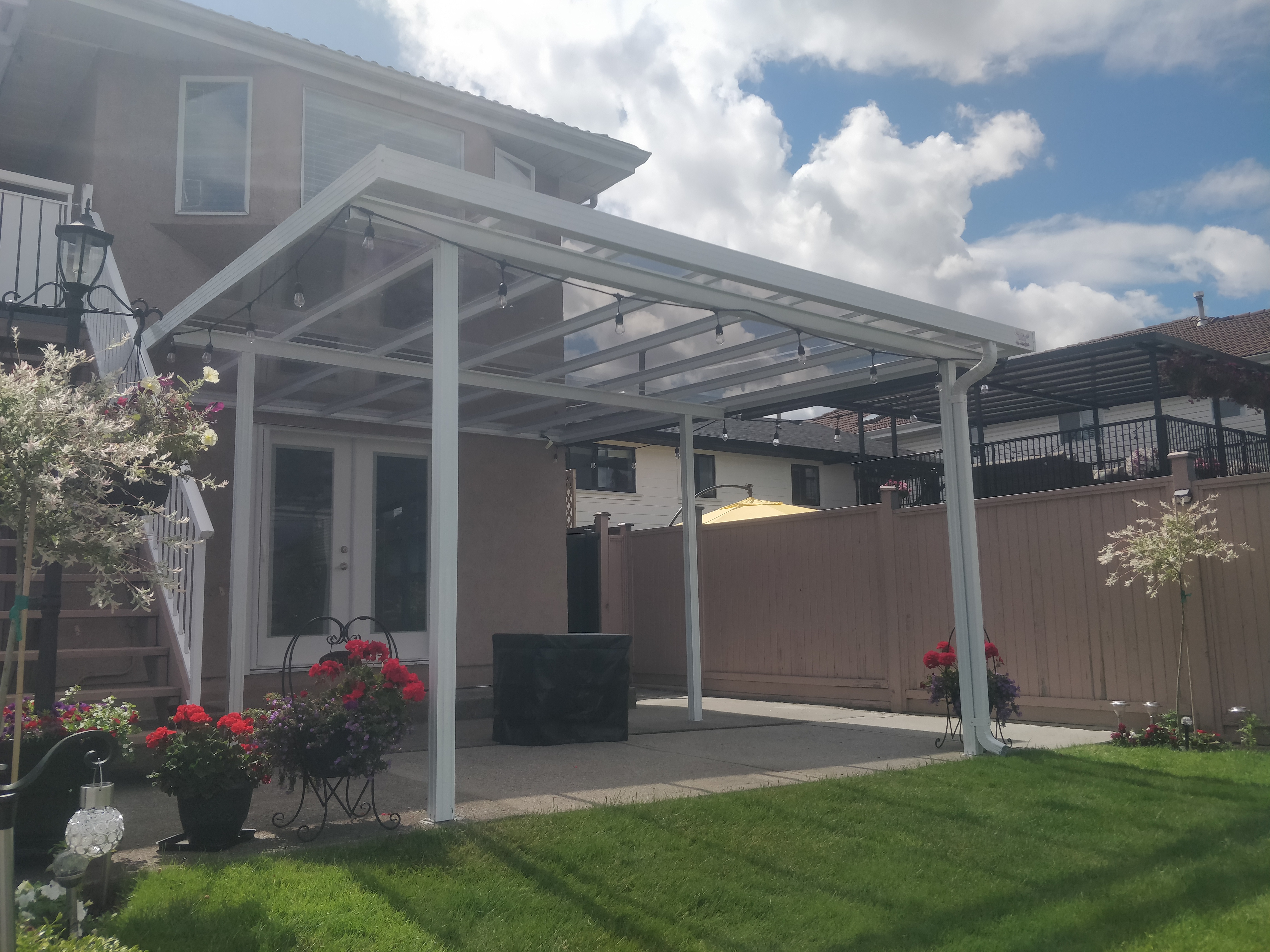 A patio cover is a structure that provides overhead protection and shade for a patio or outdoor space. It can be attached to the house or freestanding, and it can be made from various materials such as wood, metal, vinyl, or fabric. Patio covers are designed to enhance outdoor living areas, offering shelter from the sun, rain, and other elements, and they come in a variety of styles to match different architectural aesthetics and personal preferences.